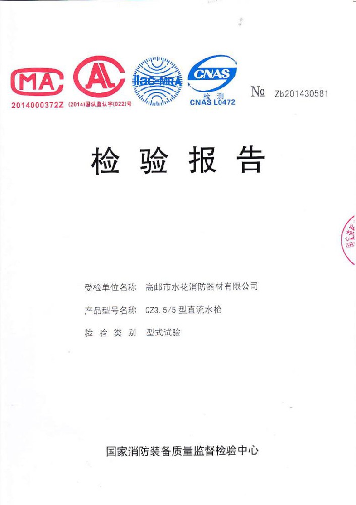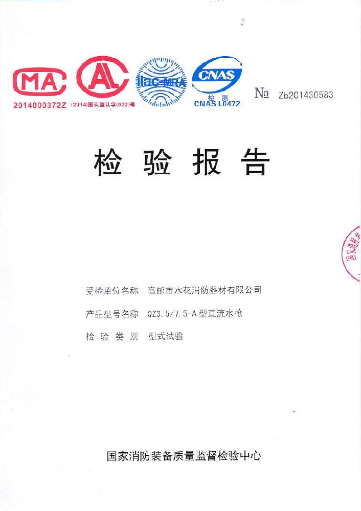 我廠創(chuàng)辦于一九七六年六月,現(xiàn)有職工600人,其中各類技術和管理人員68人。擁有固定資產(chǎn)5000萬元,占地面積35000多平方米,建筑面積25000多平方米。建立了完善的質(zhì)量體系,取得多種“計量合格確認證書”,并成為江蘇及多省的消防協(xié)會會員單位。工廠技術力量雄厚,生產(chǎn)和檢測設備齊全,工藝先進。生產(chǎn)“水花”牌水帶接口: KDK65, KD65,KY65,KN65。消防水槍: QZG3.5/7.5, QZ3.5/7.5,QP8/0.7Z泡沫水槍。室內(nèi)消火栓: SN65, SNW65-I,SNZ65, SNZW65-I。 消防軟管卷盤JPS0.8-19/25。生產(chǎn)的“郵花”牌,消防有襯里水帶:65-8、10、 13、 16、20、 25型; 80-16、 20、25型。水帶接口: KD50、65; KY50、65;KN65。消防水槍: Q2Z3.5/7.5、 5。 室內(nèi)消火栓: SN65, SNW65-I, SNZ65, SNZW65-I。 并于二零一五年五月通過公安部消防產(chǎn)品合格評定中心3C換版檢驗,獲得以上產(chǎn)品所有的強制認證證書,準予生產(chǎn)和銷售,產(chǎn)品行銷全國各地,深受廣大用戶好評。